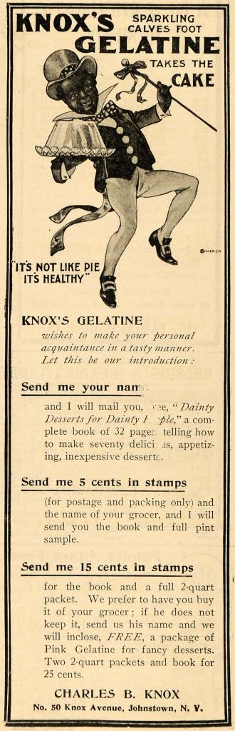 Calf’s foot jellies remained in cookbooks well into the twentieth century, generally as invalid foods as the resulting jelly is almost pure protein, fat free and was seen as nutritious and easy to digest. Fruit jellies remain a staple of hospital foods today, as anyone who has spent any recent time in a ward knows.